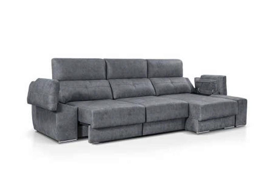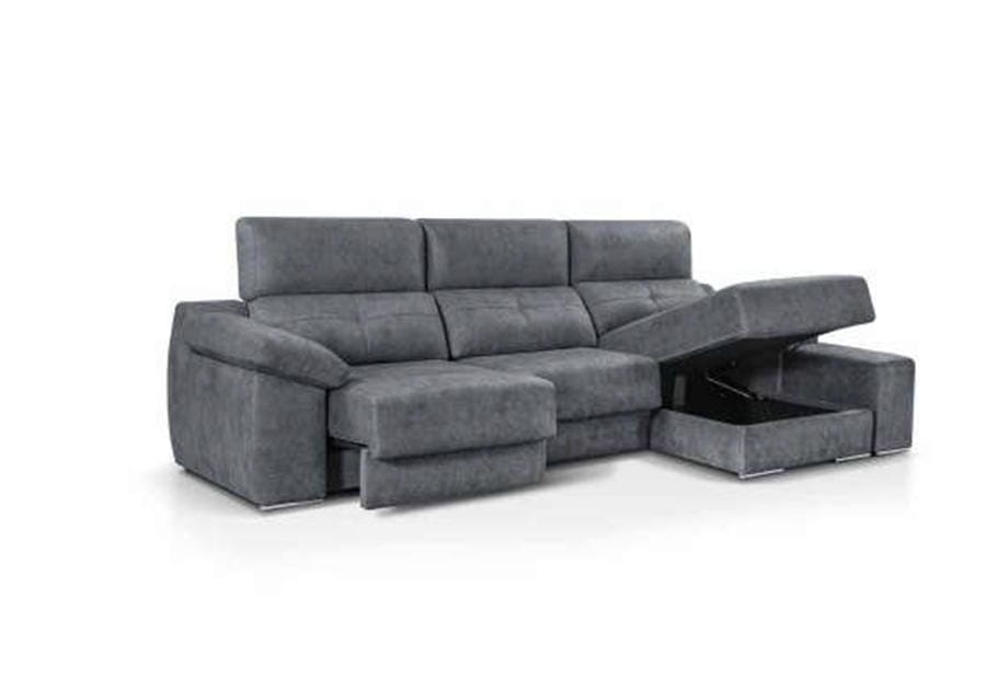 El sofá Arena ofrece de serie brazos con arcón, chaiselongue con pouff (60 x 23), patas metálicas delanteras, chaiselongue con arcón.